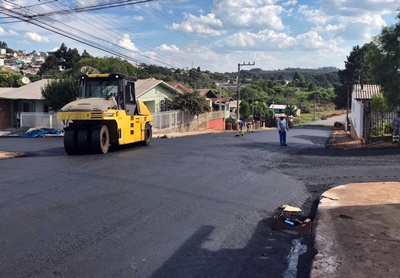 A Prefeitura de Caçador está prosseguindo com as obras de pavimentação na rua Tiradentes, na Vila Paraíso. A primeira etapa do asfaltamento foi realizada, com o reperfilamento do início da rua, além da finalização das obras de tubulação, sub-base e base.