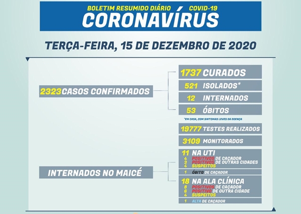 Nesta terça-feira, 15 de dezembro, o município de Caçador registrou mais um óbito causado pela Covid-19. Trata-se de um homem, de 66 anos que estava internado há vários dias no Hospital Maicé.
