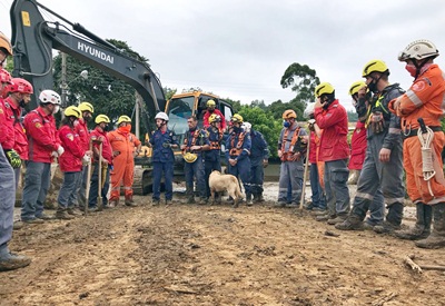 Cerca de 100 bombeiros entre voluntários e militares e cinco cães estavam envolvidos nos trabalhos de buscas na última parte do bairro Ribeirão Revólver, próximo ao Centro. Uma máquina da prefeitura também estava sendo usada por causa da quantidade de materiais, como pedras e galhos, no local.