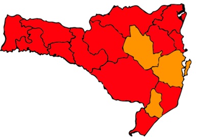 Além disso, as regiões do Alto Uruguai Catarinense, Extremo Oeste, Extremo Sul, Laguna e Serra Catarinense subiram na escala, e agora estão no nível gravíssimo.