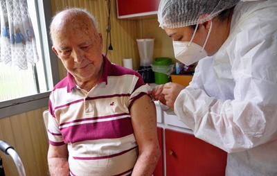 A imunização está sendo realizada nas casas das pessoas, para evitar que os idosos precisem se deslocar até as unidades de saúde