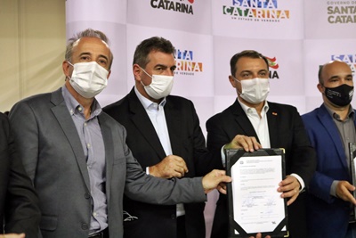 Caçador recebeu, nesta quinta-feira, 18 de fevereiro, mais de R$ 5,7 milhões em emendas parlamentares e recursos do Governo do Estado. A cerimônia contou com a presença do governador Carlos Moisés, que fez a assinatura ainda da ordem de serviço para a revitalização da rodovia SC-135, entre Caçador e Videira.