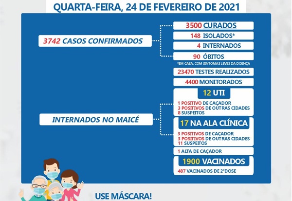 - Vacinados: 1900 (487 vacinados com a 2ª dose).