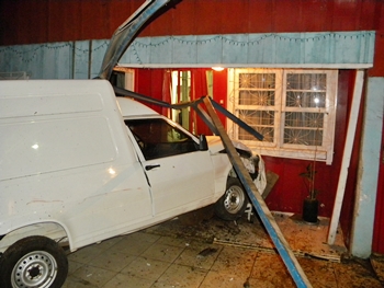 Um veículo com problemas mecânicos colidiu contra a parede de uma casa na noite desta sexta-feira, 23, na Rua Luis Tortatto e por pouco não causou uma grande tragédia. A Fiat Fiorino placas MBT-9605 de Caçador era conduzida por Erivaldo Carniel Cavalcante, 47 anos que nada sofreu.