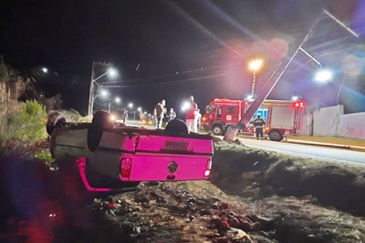Uma VW Saveiro com placas de Pinhão/PR saiu de pista e capotou depois de atingir um poste de energia elétrica, na noite desta quinta-feira, 9 de abril, em Caçador . O acidente aconteceu na Avenida Fahdo Thomé, próximo ao IFSC.