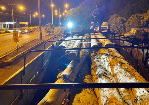 A Polícia Militar Ambiental de Santa Catarina, através da guarnição de Caçador, flagrou na noite de sexta-feira, 16 de abril, após denúncia, um caminhão MB graneleiro carregado com toras de pinheiro brasileiro.