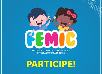 A Prefeitura de Caçador, por meio da Secretaria de Cultura, Esporte e Turismo, lança o 1º Festival Estudantil da Música e da Integração Caçadorense – FEMIC ONLINE. O evento é direcionado às crianças e adolescentes das escolas de Educação Básica do município de Caçador.