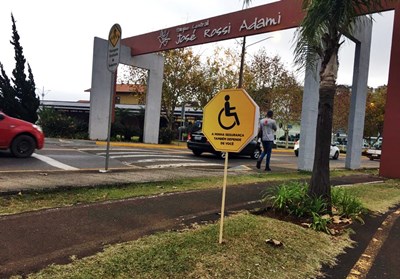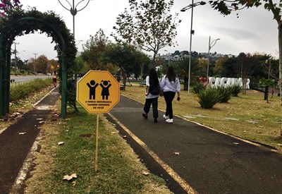 A campanha “Me Veja”, do Maio Amarelo, da Prefeitura de Caçador, espalhou placas de orientações no Parque Central José Rossi Adami.