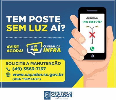 Para facilitar e agilizar o atendimento, todos os cidadãos que visualizarem ou perceberem que alguma lâmpada de sua rua está apagada, podem solicitar o atendimento. Basta entrar em contato através do telefone 3563-7137, da Secretaria de Infraestrutura e repassar o endereço para que as equipes façam a substituição.