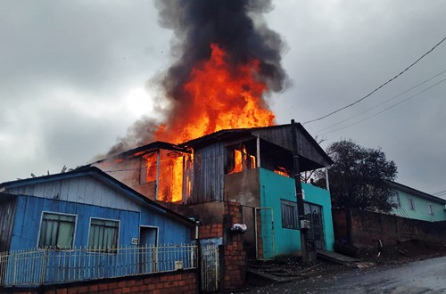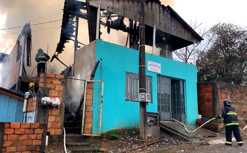 Uma residência de dois pavimentos, localizada no Bairro Martello, em Caçador, acabou pegando fogo na manhã desta quinta-feira, 3 de junho. No porão da casa funcionava uma igreja.