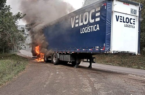 Os bombeiros chegaram ao local e encontraram a carroceria já tomada pelo fogo. A carreta estava carregada de baterias automotivas, material com grande risco de explosão.