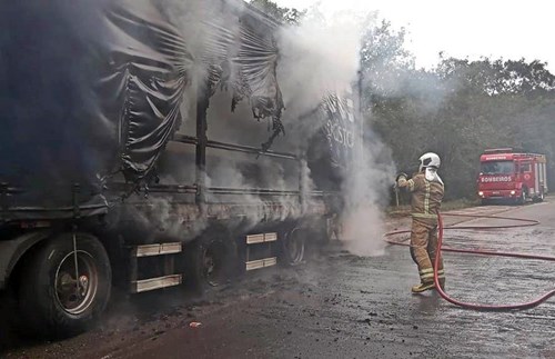 O Corpo de Bombeiros Voluntários combateu um incêndio em uma carreta por volta do meio-dia deste domingo, dia 20, nas margens da BR-153 em Irani. O veículo seguia no sentido Irani/Concórdia quando o motorista identificou as chamas.