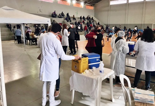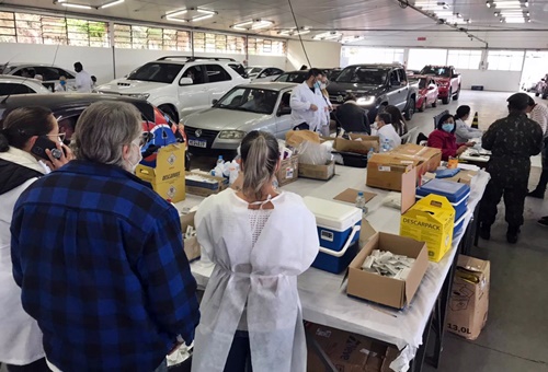 Na maior ação desde o início da vacinação contra a Covid-19, Caçador aplicou 955 doses na sexta-feira, dia 2, e 1567 no sábado (03), para pessoas com 44 anos ou mais, totalizando 2522 imunizações.