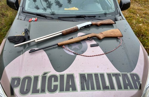 Foram localizados uma espingarda calibre .12, um revólver calibre .38 e um rifle calibre .22.