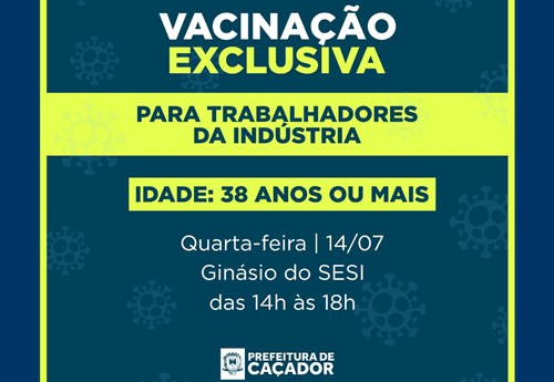 Uma nova etapa da vacinação, exclusiva para trabalhadores da indústria, vai abranger pessoas com 38 anos ou mais. A mudança na faixa etária se dá devido à pequena quantidade de doses recebidas para este público.