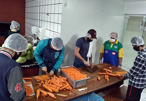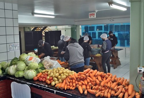Os alunos estiveram auxiliando na produção da sopa, doações de alimentos e na entrega de 273 marmitas, sob a coordenação dos professores Jakline Danielli Schuler, Maike Zeigler e Wagner Severgnini.