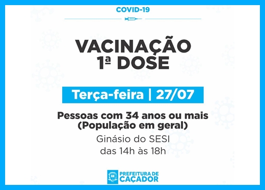 Uma nova ação de vacinação contra a Covid-19, será realizada nesta terça-feira, 27 de julho, em Caçador.
