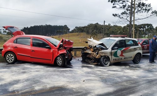 O Corpo de Bombeiros de Lages, na mesma região, foi acionado para atender a ocorrência. No relatório, a corporação confirmou que a pista congelada fez com que o veículo invadisse a pista contrária e atingisse a viatura da PM.