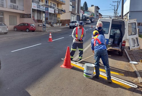 “É comum que as pinturas das vias de bastante fluxo se apaguem com maior rapidez, pois são muitos veículos trafegando diuturnamente por cima dessas pinturas. Além disso, justamente por terem bastante movimento é que elas precisam estar sempre bem sinalizadas, para aumentar a segurança das pessoas”, explica o secretário Amarildo Tessaro.