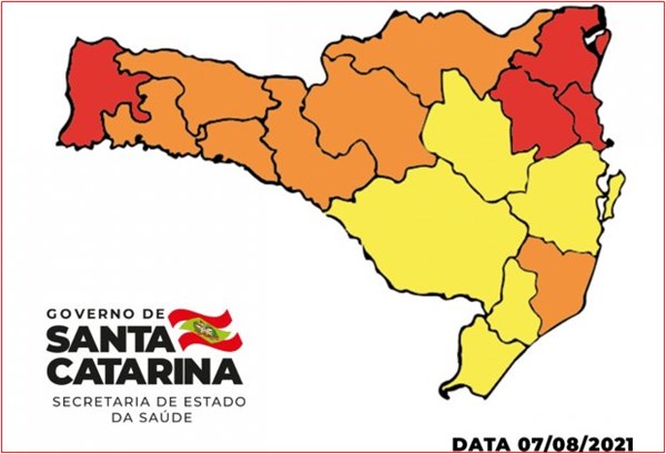 Outras sete regiões foram classificadas como o Risco Grave (laranja) para a Covid-19: Alto Uruguai Catarinense, Laguna, Meio Oeste, Oeste, Planalto Norte, Xanxerê e Alto Vale do Rio do Peixe. Em relação aos dados da semana passada, houve avanço significativo principalmente no quesito capacidade de atenção, que avalia a ocupação de leitos reservados para a pacientes com Covid-19. Oito regiões, ou seja 50% do total avaliado, apresentaram Risco Moderado (cor azul).