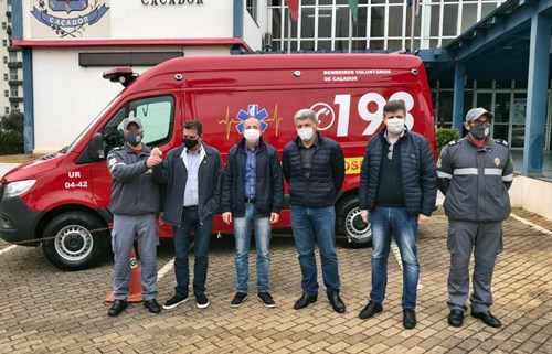 A Prefeitura de Caçador fez a entrega, na manhã desta quinta-feira, 12 de agosto, de uma nova ambulância para os Bombeiros Voluntários. Os investimentos, na ordem de R$ 220 mil, foram conquistados com apoio do deputado Valdir Cobalchini.