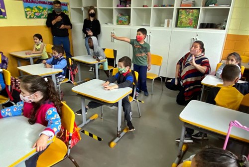 “Através deste projeto de incentivo à leitura, as crianças estão viajando na história, desenvolvendo a criatividade e o vocabulário. Seja quando estão ouvindo a história, ou quando realizam o reconto, os alunos demonstram interesse e aprendem todo o conteúdo passado”, relata a professora do pré 1, Gisele Carlin dos Santos.