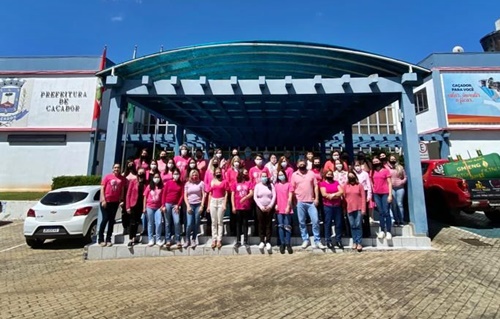 Nesta segunda-feira, 25 de outubro, os servidores da Prefeitura de Caçador vestiram camisetas rosas, em homenagem ao Outubro Rosa, mês dedicado à conscientização da importância do diagnóstico precoce do câncer de mama e colo do útero.