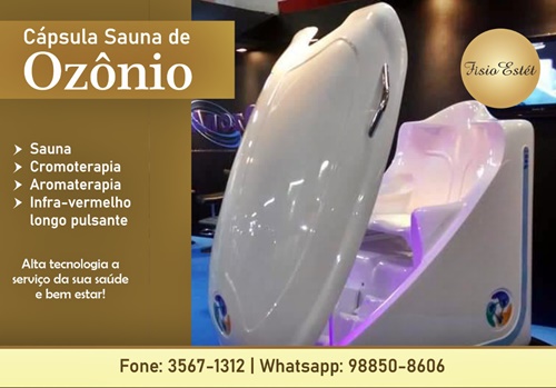 A FisioEstét traz para Caçador: Cápsula Sauna de Ozônio - uma inovação na área da saúde e cheia de benefícios na área estética! Com 5 tipos diferentes de terapias em um só tratamento: ozônio, sauna, cromoterapia, infravermelho longo pulsante e aromaterapia.