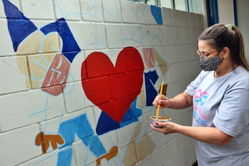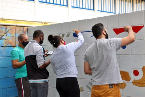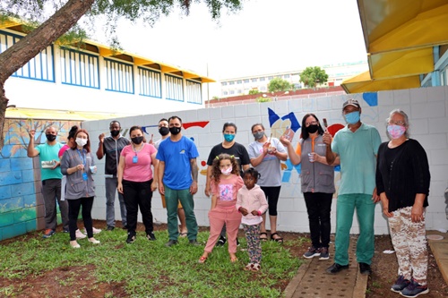 No sábado, dia 20 de novembro, os alunos aplicaram as cores naturais no muro da escola de educação básica Hilda Granemann Souza do Bairro Martello.