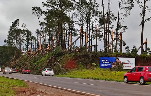 Um forte temporal deixou um rastro de destruição em Chapecó, Xaxim e Xanxerê, no oeste de Santa Catarina. Árvores caídas, barracões destelhados e redes elétricas danificadas foram alguns dos estragos registrados.