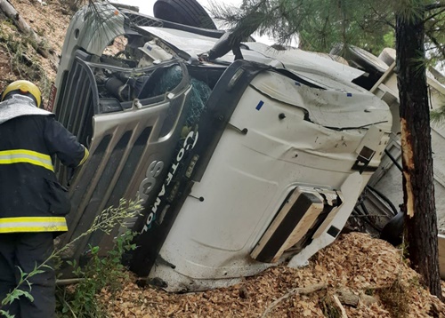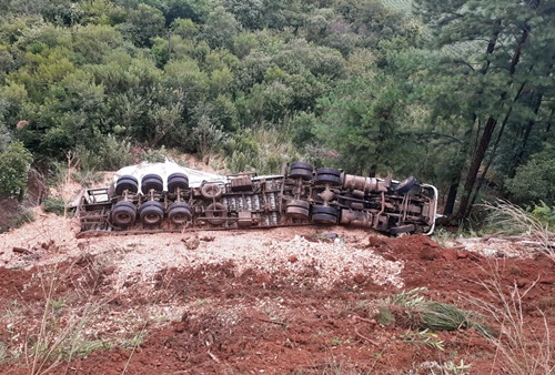 A carreta, com placas de Fraiburgo (SC) despencou em uma ribanceira, com cerca de 50 metros. O condutor estava caído, fora do veículo, quando os bombeiros chegaram. Ele relatou a guarnição que foi ejetado do caminhão.