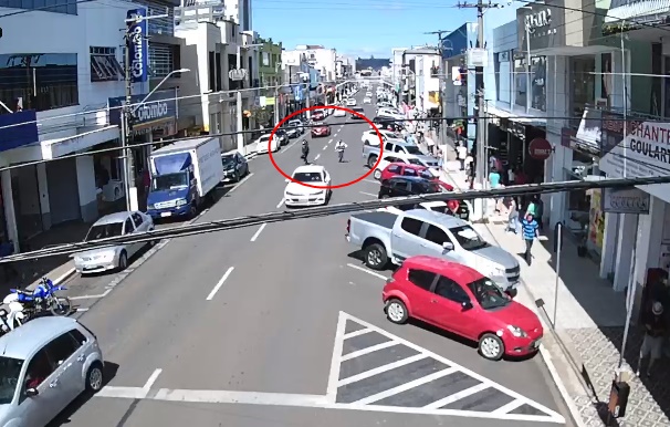 Imagens de videomonitoramento mostraram que os autores se evadiram do local num veículo prata e, com auxílio das imagens, as guarnições da Polícia Militar localizaram o referido automóvel no final da tarde.