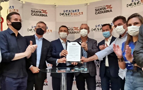 A Prefeitura de Caçador aderiu ao Plano 1000, do Governo do Estado. O prefeito Saulo Sperotto foi recebido pelo governador Carlos Moisés na Casa d’Agronômica, em Florianópolis, para a solenidade de adesão.