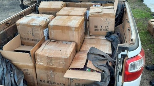 Durante abordagem ao carro, os policiais constataram que o veículo transportava cerca de 7.280 unidades do produto, que tem a comercialização proibida no Brasil, configurando assim o crime de contrabando.
