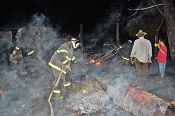 Enquanto seu filho saiu para pedir socorro, seu Antônio e a esposa ficaram tentando apagar o fogo com auxilio de baldes e mangueiras, porém o galpão já estava tomado pelas chamas. Mesmo os bombeiros tendo sido acionados e rapidamente terem deslocado para o local, não foi possível salvar o imóvel. O fator distância e o péssimo estado de conservação da única estrada que dá acesso a propriedade, impediram que o fogo fosse apagado a tempo.
