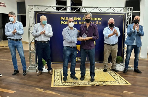Ainda, durante a cerimônia, representando outros servidores que completaram 30 anos de serviço, entre 2017 e 2021, o servidor Valdir Medeiros, foi homenageado com uma placa. “É emocionante ver o nosso trabalho diário ser reconhecido”, comentou Valdir.