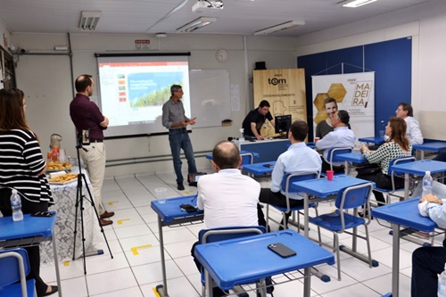 O gerente executivo Daniel Tenconi explicou em detalhes o histórico da indústria madeireira, as dificuldades enfrentadas e a construção de uma nova realidade a partir do TEM. Várias ações foram realizadas e outras estão em processo de realização para aproximar a comunidade do setor madeireiro, que é de fundamental importância para a economia de Caçador e região. Após, foi realizada uma coletiva de imprensa, que teve ainda a participação do presidente do Sindicato da Madeira, Aurélio De Bortolo e do vice, Alexandre Eugênio Busato.