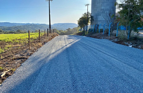 As obras de pavimentação no interior de Caçador não param. Agora, as linhas Aliança e São Pedro já estão com a base finalizada para os primeiros trechos de asfaltamento.