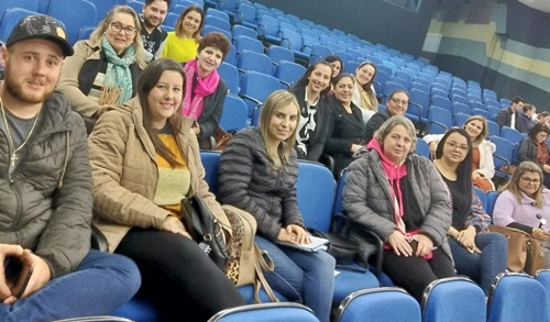 De Caçador, estiveram participando 17 profissionais da rede municipal de ensino, sendo professores do AEE; especialistas; professores em geral; auxiliares de biblioteca e coordenadores da rede.