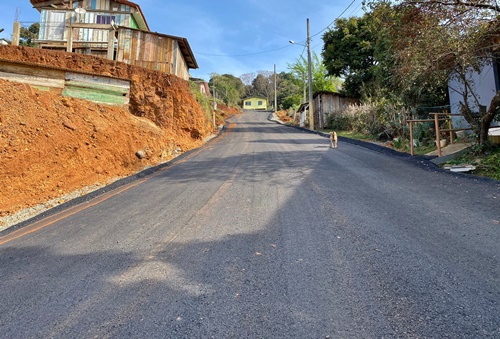 As últimas a serem asfaltadas foram na Vila Santa Catarina e no Nossa Senhora Salete. Agora, os trabalhos serão direcionados para o bairro Martello, nas proximidades do CAIC.
