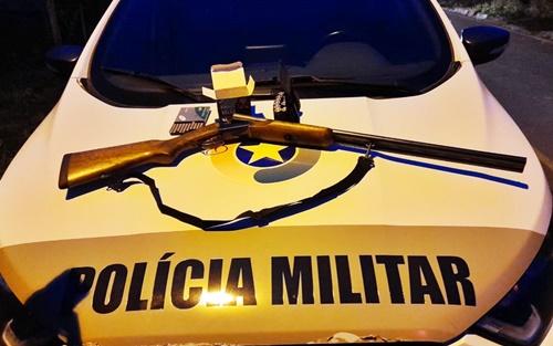 Uma espingarda calibre 20 e algumas munições foram apreendidas pelos policiais militares.