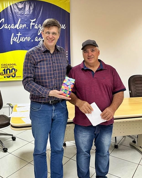 A Prefeitura de Caçador realizou, na terça-feira, 4 de outubro, a entrega dos smartphones do primeiro sorteio da promoção do IPTU Premiado 2022. Estiverem retirando os prêmios os contribuintes Leonardo Brusco, Ivo Leal Canalli e Juci Stein.