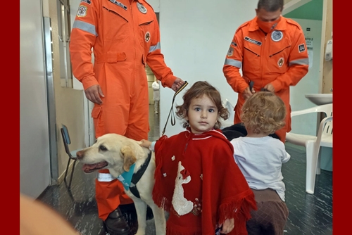 Além das crianças, os cães também fizeram a alegria de outros pacientes e acompanhantes. Os cães que participam da ação, são de busca e salvamento. Após uma longa carreira de trabalho salvando muitas pessoas, agora estão aposentados e auxiliando no projeto, levando mais amor e alegria para o Hospital.