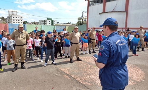 Durante a tarde, os bombeiros foram até a unidade escolar e repassaram os conhecimentos básicos para uma evacuação. Em seguida, uma simulação foi realizada e os alunos colocaram na prática os conhecimentos apreendidos.