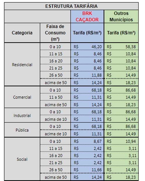 A aplicação das novas tarifas significará uma diferença de R$ 3,99 por mês para mais de 50% dos clientes de Caçador.
