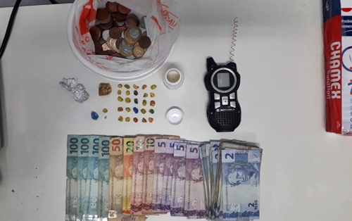 Durante buscas no local, os policiais localizaram 27 pedras de crack e mais de R$ 600 em dinheiro e moedas.