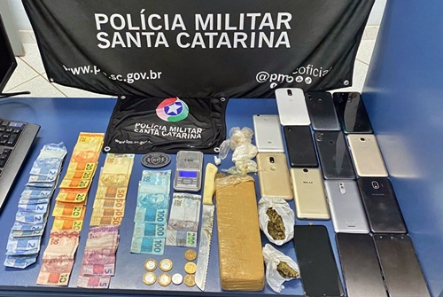 Durante a abordagem, os policiais realizaram diligências e conseguiram localizar drogas escondidas dentro de um carro e embaixo de uma cama. Foram apreendidas cerca de 750g de maconha, 29g de cocaína, dinheiro, balança digital e celulares.