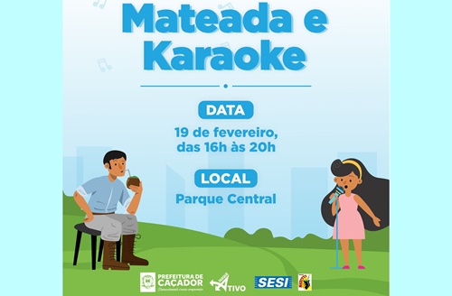 A Prefeitura de Caçador, através da Secretaria de Cultura, Esporte e Lazer, realiza, neste domingo, 19 de fevereiro, uma ação do Parque Ativo, incluindo mateada e Karaokê, no Parque Central José Rossi Adami, das 16h às 20h.