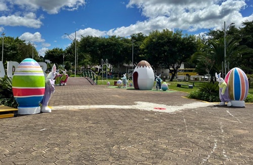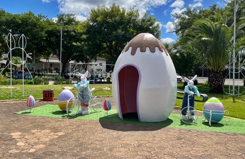 As pessoas que passarem pelo Parque Central ou pela rua José Boiteux, já podem contemplar parte da decoração especial de Páscoa. A previsão da conclusão da instalação dos enfeites é segunda-feira, 20 de março.