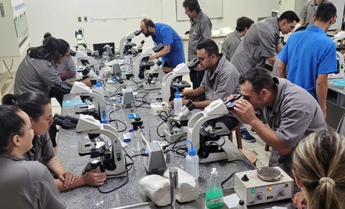 Alunos do Curso Técnico em Processamento da Madeira turma 2022/1, do SENAI de Caçador, acompanhados pelos professores Bruno Machado, João Batista De Geroni e Ivonaldo Fermino estiveram no laboratório de histologia da Uniarp, para aumentar os conhecimentos ligados a microscopia da madeira.